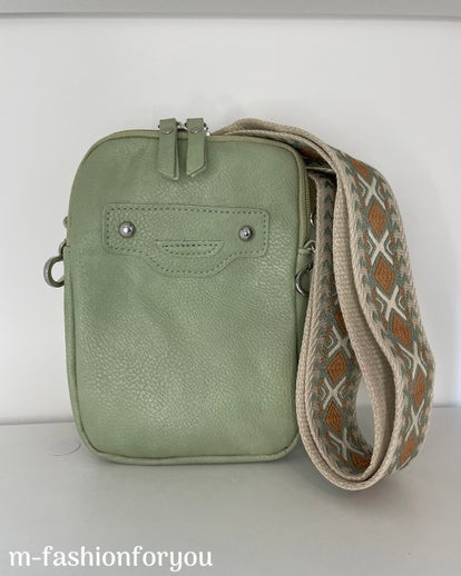 Handig klein tasje met 2 grote vakken plus een klein vak aan de voorkant die wordt afgesloten met een magneet sluiting.